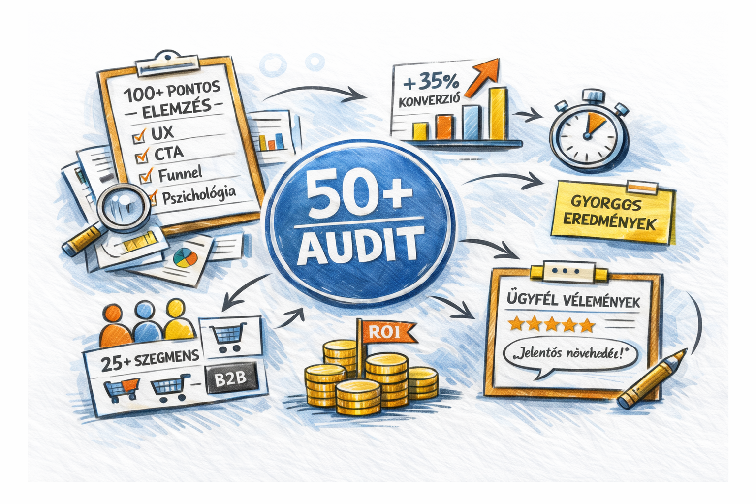 A konverziós audit célja nem egy új projekt eladása, hanem a jelenlegi weboldalad üzleti teljesítményének javítása. Célunk, hogy az audit valódi üzleti értéket adjon — nem pedig új költségeket generáljon.